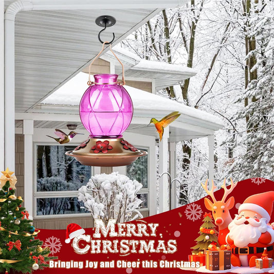 Hummingbird Feeder, Glass Hummingbird Feeder for Outdoors, Netted Texture Ball Shape Bottle, 20 Ounces, Lavender, Birthday Gifts for Women Men, Gifts for Mom Dad