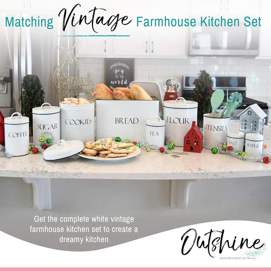 Large Kitchen Utensil Holder and Farmhouse Decor with Matching Salt and Pepper Shakers, White | Chic Vintage Cooking Utensils Holder | Ideal Gift for Women, Wife, Mom, Girlfriend