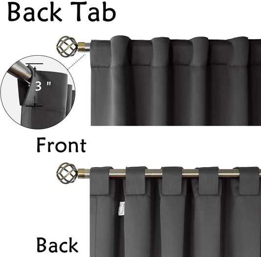 Rod Pocket and Back Tab Blackout Curtains for Bedroom - Thermal Insulated Room Darkening Curtains for Living Room, 2 Window Curtain Panels (52 X 95 Inch, Dark Grey)