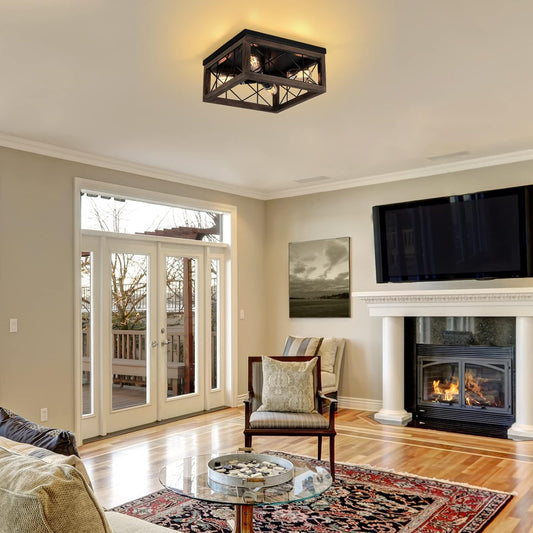 Rustic Farmhouse 4-Light Ceiling Black Light Fixture, UL Certified, Suitable for Kitchen, Dining Room, Entryway