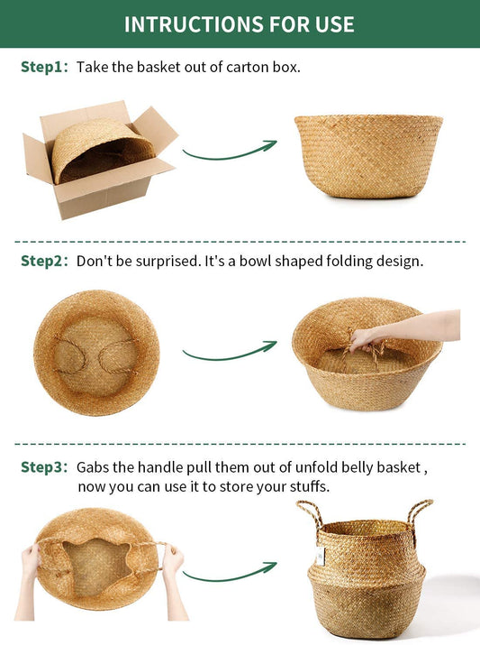 720303 2 Pack Seagrass Plant Basket - Hand Woven Belly Basket with Handles, Storage Laundry, Picnic, Plant Pot Cover, Home Decor and Woven Straw Beach Bag (Extra Large,Brown)