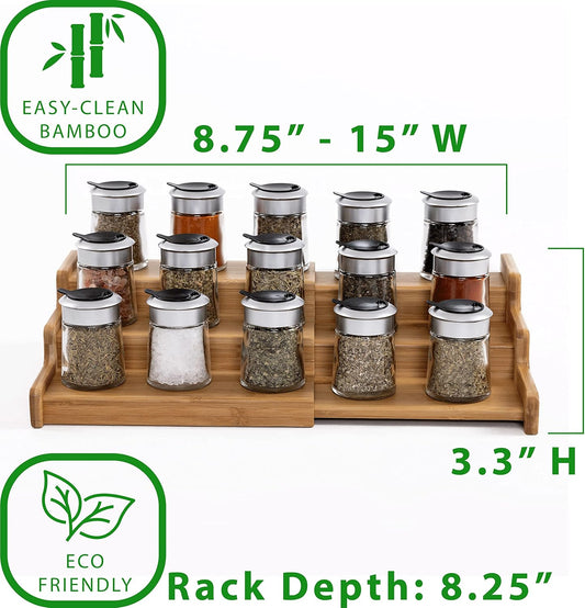 Bamboo Premium Wood 3-Tier Step Shelf Spice & Seasoning Storage Rack Organizer, for Kitchen, Cabinet, Countertop, Pantry, Bathroom, Salon, Bamboo, Expandable 8.5" - 15" W