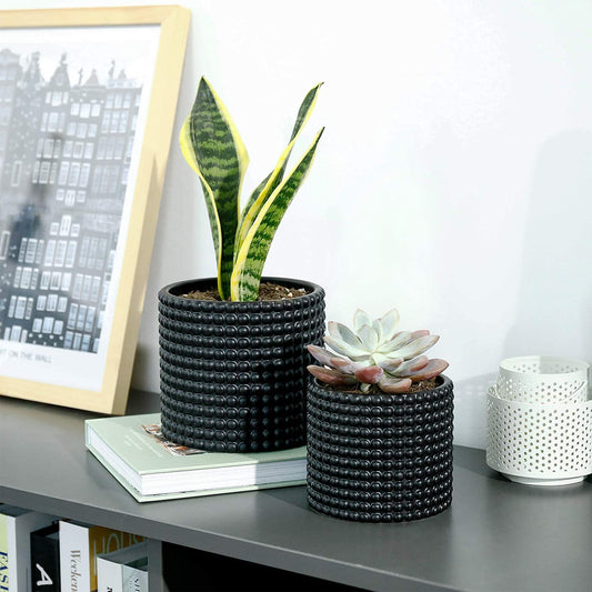 Black Ceramic Vintage Style Hobnail Patterned Planter Pots 6 and 5 Inch Containers with Watering Drain Plug for Indoor Succulent Plants or Flowers