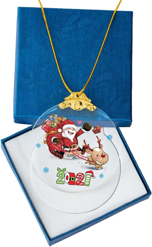 Christmas Ornaments 2021 Santa Claus Christmas Tree Crystal Glass Pendant Present Keepsake Ceremony for Family Friends Christmas Novelty Souvenir